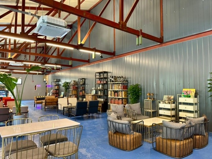 덕산방직 카페는 오래된 공장을 개조하여 빈티지한 느낌을 그대로 살린 공간입니다. 낡은 벽돌 건물과 철제 구조물, 곳곳에 남아 있는 공장 장비들이 독특한 분위기를 연출해요. 카페 안으로 들어서면 마치 70년~80년생 세대들 시대를 공감할 수 있는 공간. (다방, 까치만화방, 오락실, 비디오대여점, 추억의 차 포니, 문방구 등등)